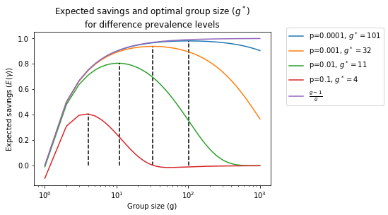 We can also define the savings relative to the individual testing strategy and calculate its expectation: