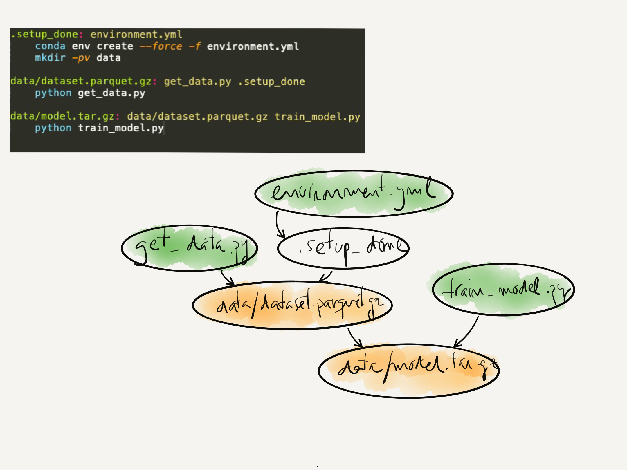 1. A setup target that creates a conda environment from the Yaml file we created in last chapter’s Practice time and runs the corresponding test_env.py